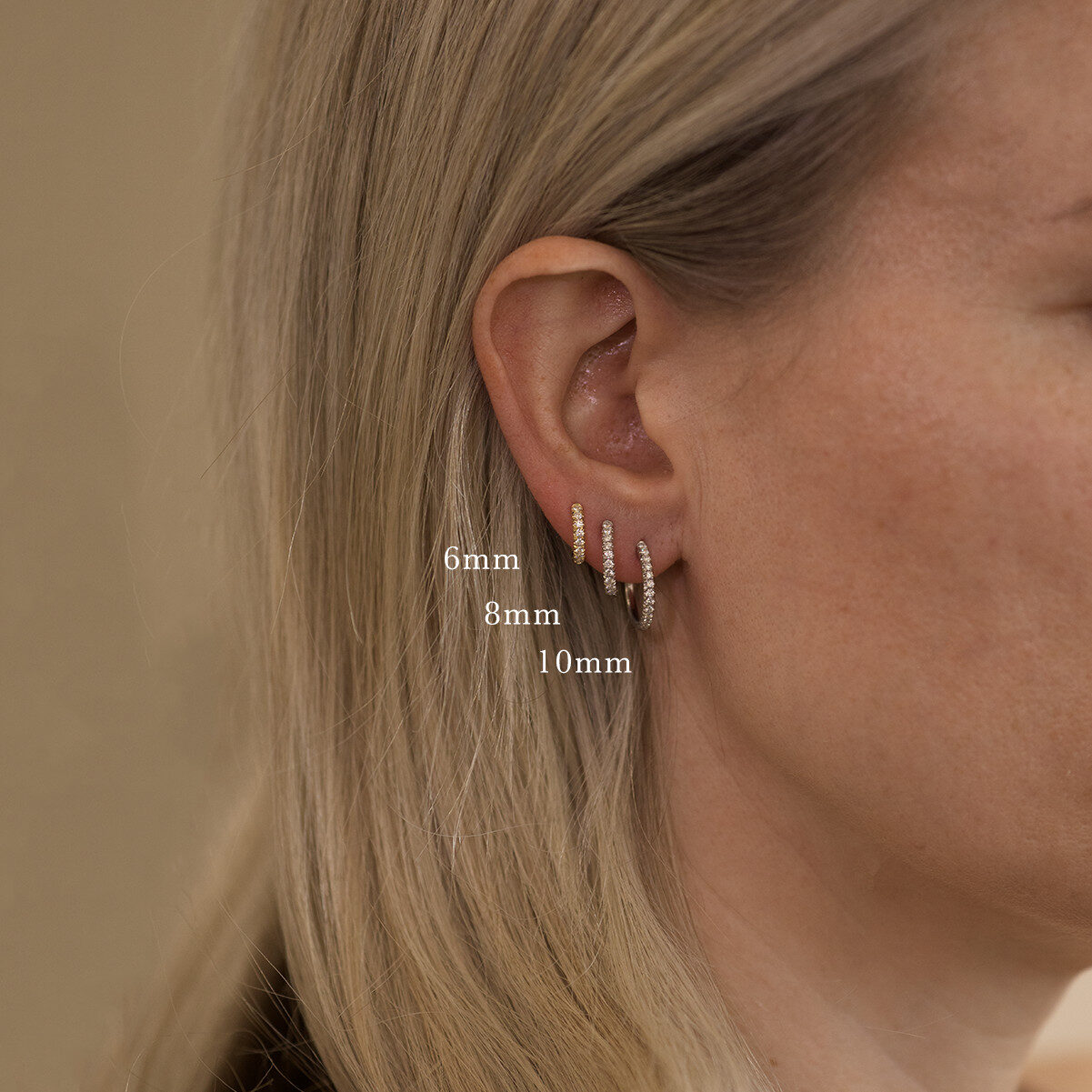 Number of Diamonds and Total Carat per pair: 6mm – 14 pcs, total 0.12 carat per pair.