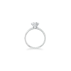 The ‘Signature’ Solitaire Ring is showcasing the very classic of ring designs. The ring shank gets thinner towards the diamond to highlight the stone, it also suits perfectly next to a wedding band. This engagement ring is made with six claws holding your center diamond. The ring shank has round brilliant cut diamonds, castle-set 3/4 down the shank.