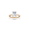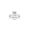 Denna förlovningsring har en något rakare ring skena och fyra nätta klor som håller diamanten. Diamanten är smaragdslipad, en perfekt form för personen som önskar något stilrent och unikt. Ringskenan har samma bredd hela vägen runt, något som gör den lätt att matcha med en vigselring i framtiden.